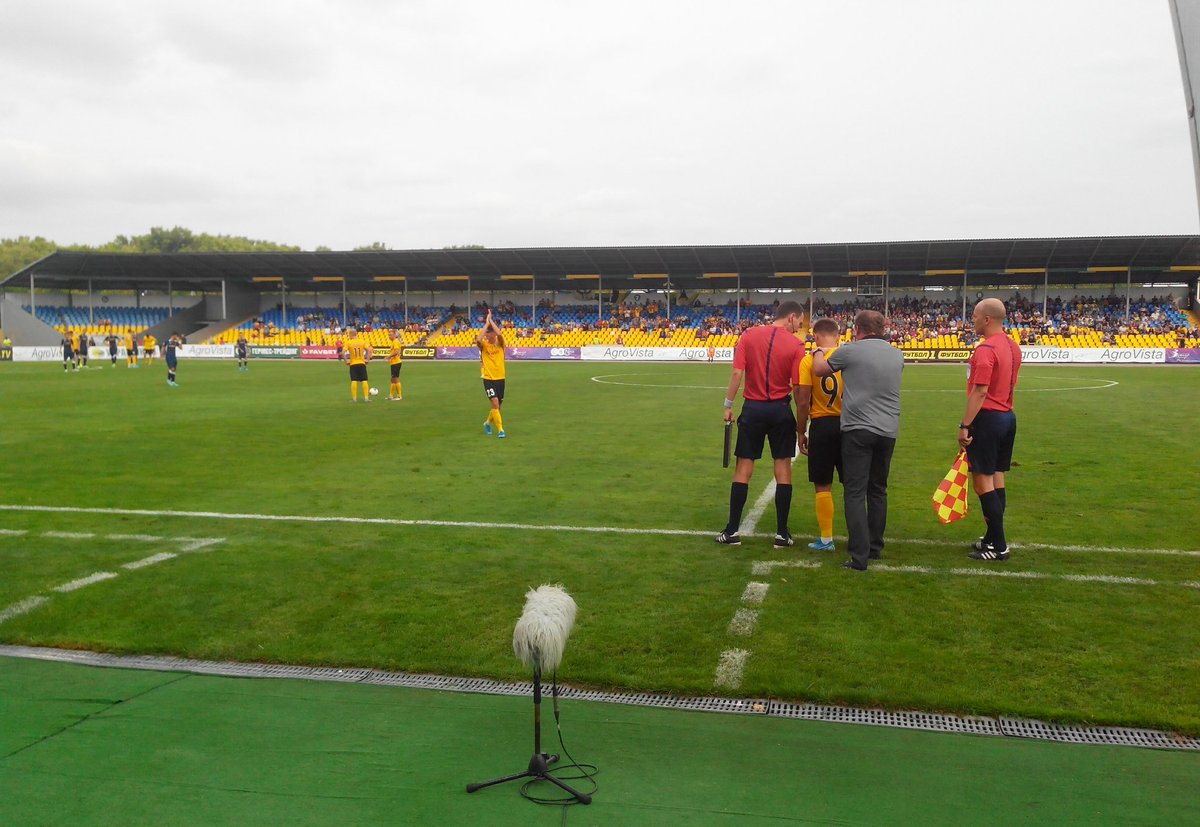 54 мин. ГОООООООООООЛЛЛ!!! 1:0!!! После навеса с фланга Лопырёнок грубо ошибся, скинув мяч под удар Довгому, который из центра штрафной расстрелял ворота!